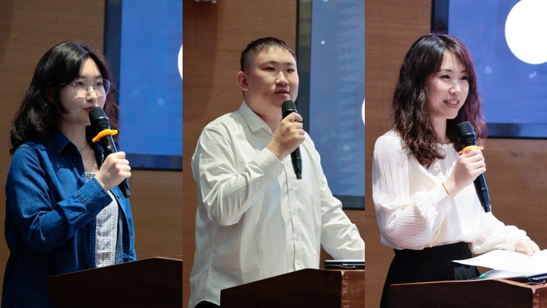 薛子易和贺泳迪老师作为第22届“书海泛舟”知识竞赛的冠军,为现场的学生们分享了自己的读书心得和观赛感受。他们鼓励同学们于墨香中采撷智慧,在思维碰撞中拓宽视界,借深度思考锤炼心性;更寄语青年以书为媒广结益友,以知识为楫勇溯时代洪流。