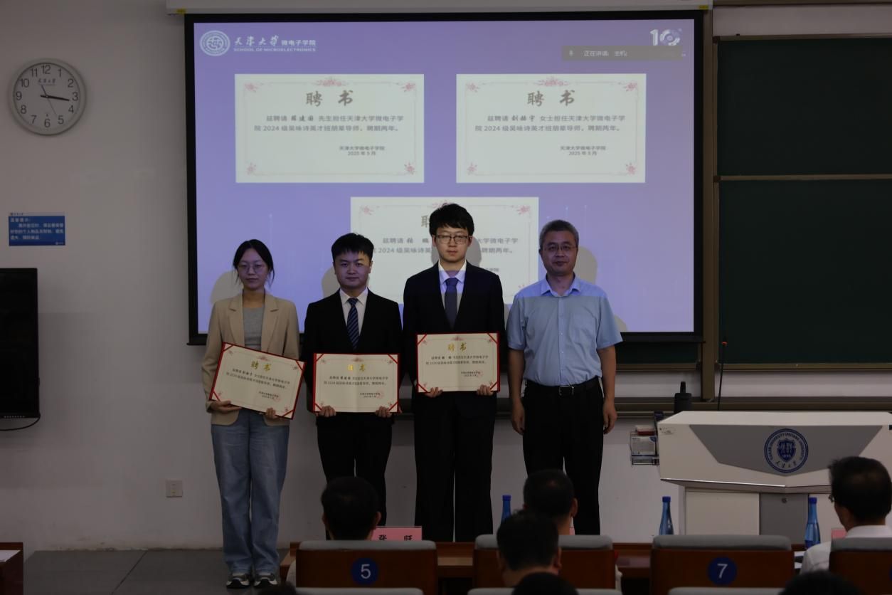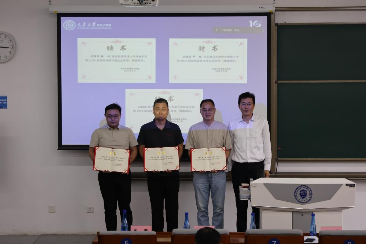 为深化产学研融合、赋能学生成长,学院为本届吴咏诗英才班配备了学术功底扎实,实践经验丰富的“企业导师”和优秀的同龄榜样“朋辈导师”。微电子学院院长马凯学为吴咏诗班企业导师颁发聘书,微电子学院副院长马永涛为吴咏诗班朋辈导师颁发聘书。此次“双导师”聘任延续了吴咏诗班“理论与实践并重”的特色,为学子构建起“学术引领+产业赋能+朋辈互助”的立体化培养生态。