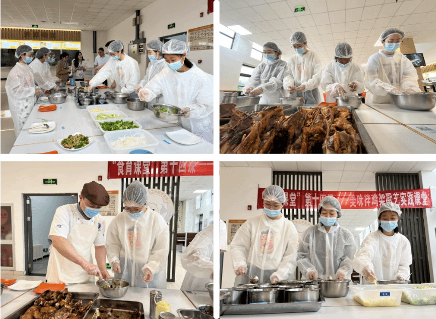 吃货作战,厨艺比拼。早已跃跃欲试的同学们纷纷披挂上阵,瞬间化身校园厨神,在师傅传授技艺的基础上,根据自己的喜好、口味和独家创意,选取配菜,调制料汁,不一会儿,一盘盘香飘四溢的美味鸡架大餐就呈现在大家眼前。