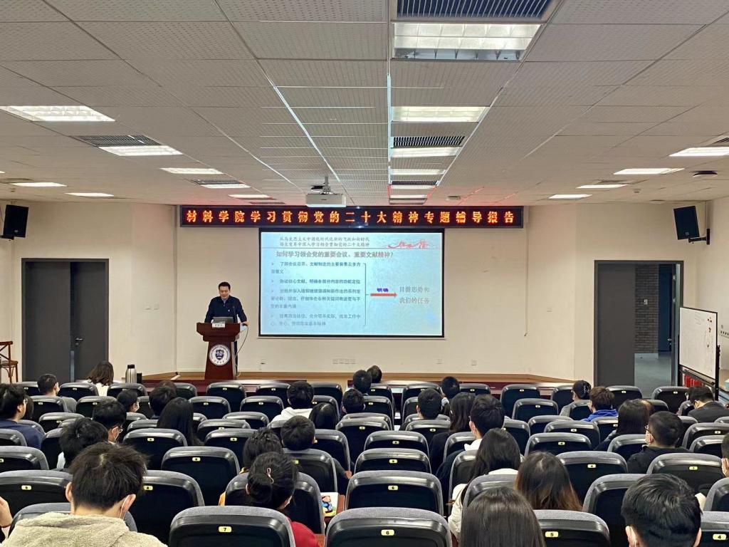 材料学院党委将把学习宣传贯彻党的二十大精神作为当前和今后一个时期的首要政治任务,引导广大师生读原文、悟原理,在全面学习上下功夫;全面把握党的二十大作出的各项战略部署,深刻认识实现全面建设社会主义现代化国家各项目标任务的艰巨性和复杂性,在全面把握上下功夫;全面贯彻党的教育方针,坚持立德树人的根本任务,在全面落实上下功夫。学院党委将把对党的二十大精神的学习同推动学院事业发展相结合,团结和带领学院师生,以永不懈怠的精神状态和一往无前的奋斗姿态,不断推进一流材料学科建设。