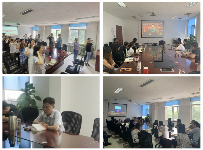 在庆祝大会开始前,支部书记刁可带领全体党员重温入党誓词,全体党员面向党旗,庄严宣誓。铮铮誓言,字字铿锵,神圣而豪迈,在重大而庄严的日子里,进一步刻印在每一位党员的心中。
