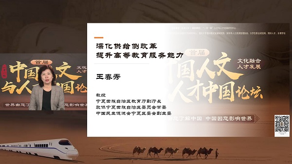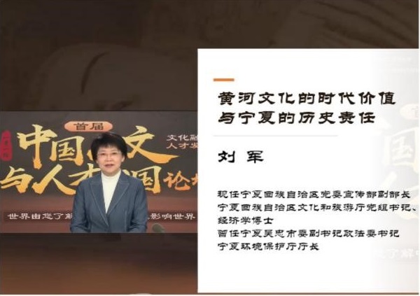 论坛上,宁夏党委宣传部副部长、文化和旅游厅党组书记、厅长刘军博士做题为《黄河文化的时代价值与宁夏的历史责任》的主题发言,她在发言中全方位展示了历史悠久、经济繁荣、民族团结、环境优美、人民富裕的美丽新宁夏,体现了“塞上江南神奇宁夏,黄河文化传承彰显”并诚邀全球精英人才到宁夏发展。宁夏教育厅副厅长王春秀在主题发言中表示,要秉承“互联互通、开放包容、协同创新、合作共赢”的新发展理念,促进“一带一路”倡议支点建设提供强有力的人才支撑和智力支持。