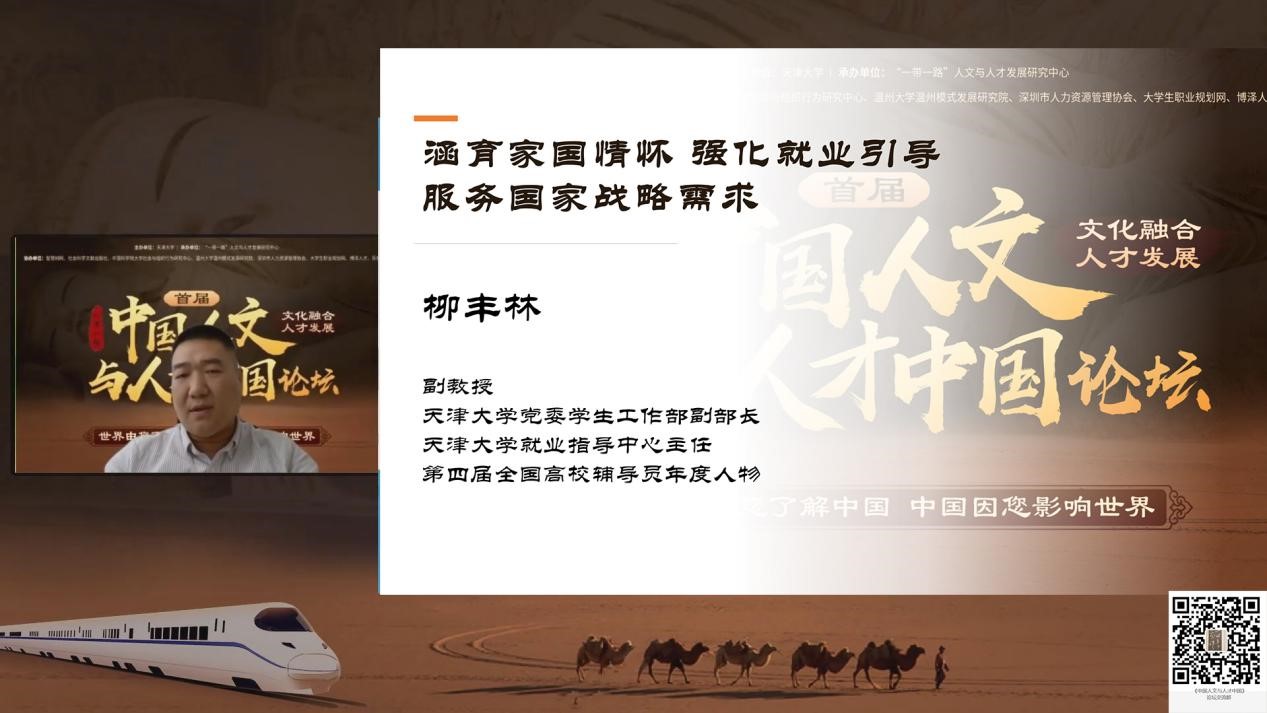 天津大学党委学生工作部副部长、就业指导中心主任柳丰林从涵育家国情怀,强化就业引导,服务国家战略需求,从党和国家对于青年人才的要求,浅谈大学生就业视角下的人才培养与输送。