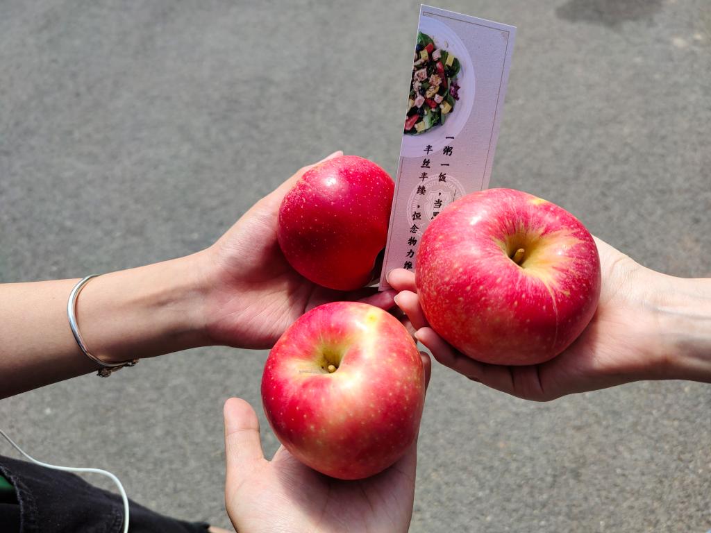 “以前,看着那些没吃完的食物被倒进垃圾桶里,说实话很心痛。‘光盘换礼’活动换来的不只是水果,更是我们心中的节约意识与‘光盘意识’。”刚在收餐处放好吃光了的餐盘的化工学院大四学生朱红淇这样说。