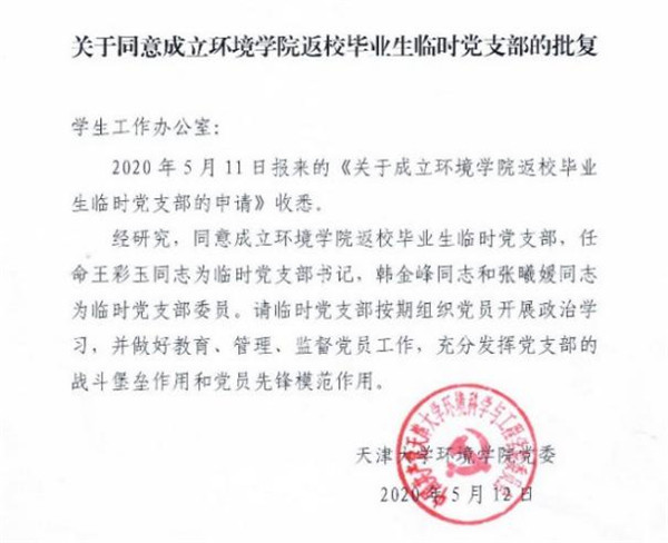 环境学院党委同意临时党支部成立的批复和组织生活截图