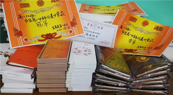 5月19日,宕昌一中校长陈雄,政教处、教务处相关负责老师参加颁奖典礼,并为表现突出的6个班级、16名最佳辩手、5名优秀指导教师颁发了由天津大学宣传部、招生办、校友基金处资助的奖品。