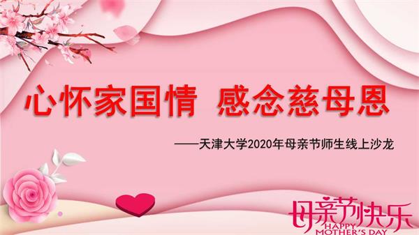 本站讯(通讯员 唐尧 高佳妮 李翯瑶)“特别的爱献给特别的你”,在新冠肺炎疫情的影响下,今年的母亲节具有着特殊意义。为弘扬爱国主义精神,感念母爱情深,2020年5月10日,由校工会主办,校女教授协会、校女工委员会、校研究生会协办的“心怀家国情,感念慈母恩”师生沙龙活动在线上举行。校党委副书记、工会主席赵美蓉,机关部处领导,校女教授协会会长、经管学部傅利平老师及理事,校女工委委员,我校优秀女师生代表以及天津大学附属医院抗疫一线女医务人员代表参加活动,活动由校女工委主任于晓燕主持。
