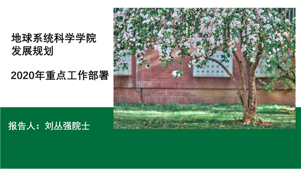 最后,地科院院长、中科院院士刘丛强对于2020年成立的地球系统科学学院建设规划向全体师生进行了阐释说明,并部署了2020年重点工作。