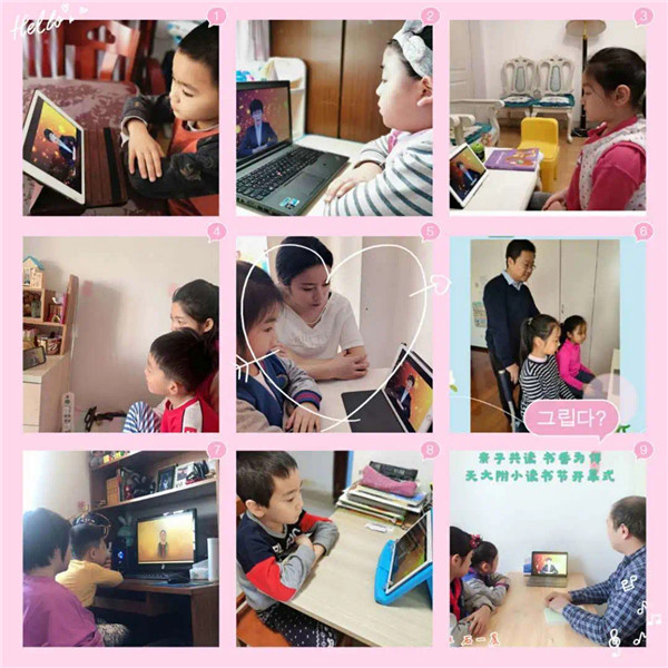 本站讯 (通讯员 王曌)一缕书香,一生为伴。在这个不同寻常的寒假,天大附小开展以“亲子共读 书香为伴”为主题的亲子阅读系列活动,为附小学子们营造浓郁的书香氛围。3月27日,学校通过网络平台举行了隆重的读书节启动仪式。在“停课不停学”期间,让每一个孩子们都能够悦享读书之乐,在别样的读书实践活动中陶冶情操。