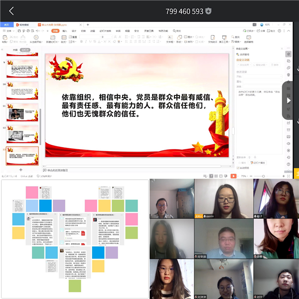 行政工作的开展以及后续复学复工提出了各自的看法和建议。党员同志们纷纷表示通过线上学习,进一步坚定了“四个自信”,对中国共产党卓越的领导能力和社会主义制度无可比拟的优越性有了更深层次的认识,在伟大的中国共产党领导下,在伟大的民族精神指引下,中华民族一定能取得这场没有硝烟的战争的最终胜利。
