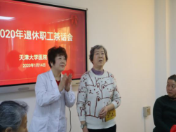 本站讯(通讯员夏争芳) 新春欢聚别样亲,共话盛世新时代。1月14日,天津大学校医院在医院四楼会议室举办了2020年退休职工茶话会。小幼医党委相关负责人及院领导班子及部分职工一同热情接待各位退休职工,与退休老同志欢聚一堂,喜迎佳节。会议由校医院党支部书记张长福主持。