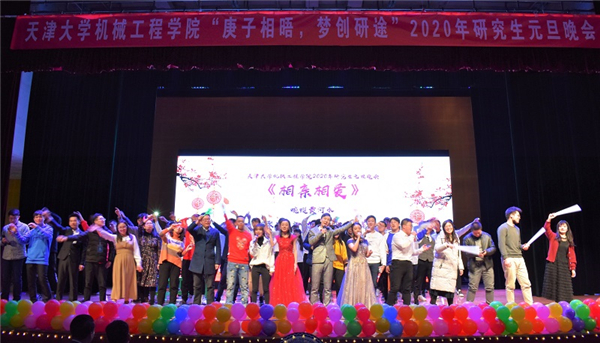 本站讯(通讯员 张建鹏)豕去春无限,鼠来岁有余。12月31日晚,由机械工程学院党委学生工作办公室主办,机械工程学院研究生会承办的“庚子相晤,梦创研途”2020年研究生元旦晚会在北洋园校区大通学生中心B区报告厅隆重举行。天津大学党委学生工作部副部长王开,机械工程学院院长王天友、党委书记孙月海、党委副书记刘岳、副院长曹树谦,厦门航空天津分公司市场部经理刘俊良,材料学院辅导员卫雅如,理学院辅导员刘培毅,机械工程学院专业教师李佳、张赫晨,综合办公室副主任陈垚,学生工作办公室全体辅导员和广大研究生同学400余人共同观看此次晚会。
