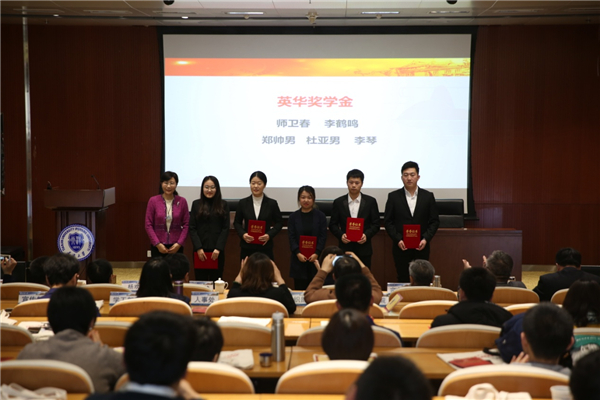学院教师代表孙兰英教授在发言中表示,学院发展取得了很大成就,对此表示由衷的喜悦。为鼓励马院学子刻苦学习、奋发向上,她将今年获得的天津大学求是楷模奖金10万元全部捐献给学院,设立“天津大学—英华奖学金”。“英华奖学金”中的“英华”二字,取自校歌“英华卓荦”,希望同学们以求知问学认识新时代,以担当责任引领新时代,在勤学中筑牢知识的根基,积极回报社会。