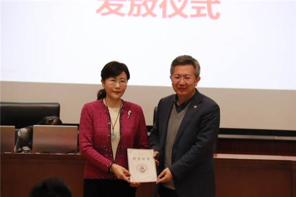 颜晓峰教授从宗文举教授手中接过牌匾。