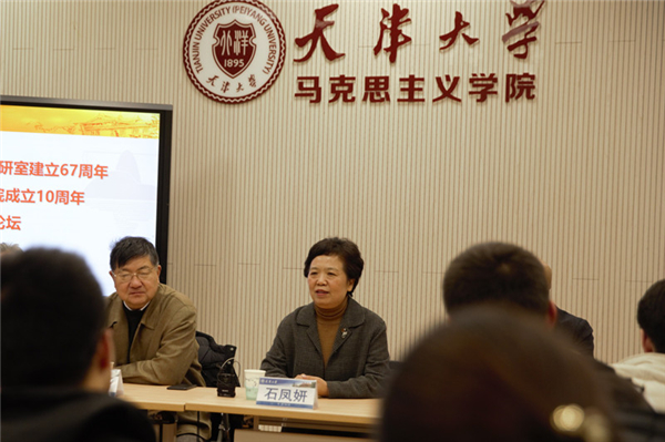 31日下午,纪念活动的校友论坛和青椒论坛在马克思主义学院举行。天津市社会科学界联合会党组书记、专职副主席石凤妍出席校友论坛,她分享了自己从理工科转到从事马克思理论教学工作的经历和故事,对学校、学院的培养和教授自己的老师们表示感谢。宗文举教授、席宏斌校友、文学院党委书记马小宝、天津大学区域研究院副院长肖述虎和王开元校友分别发言,围绕各自学习、从教、创业的感受以及学习马克思主义理论对自己的影响进行了交流分享。颜晓峰院长和南开大学马克思主义学院副教授、刘明明参加了青椒论坛,与马院青年教师们交流了凝练学科方向和提升新利18网址登录