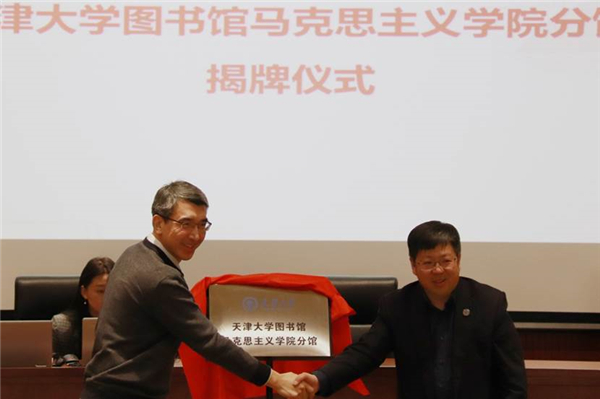 图书馆档案馆党委书记张超英和徐斌一同为天津大学图书馆马克思主义学院分馆揭牌