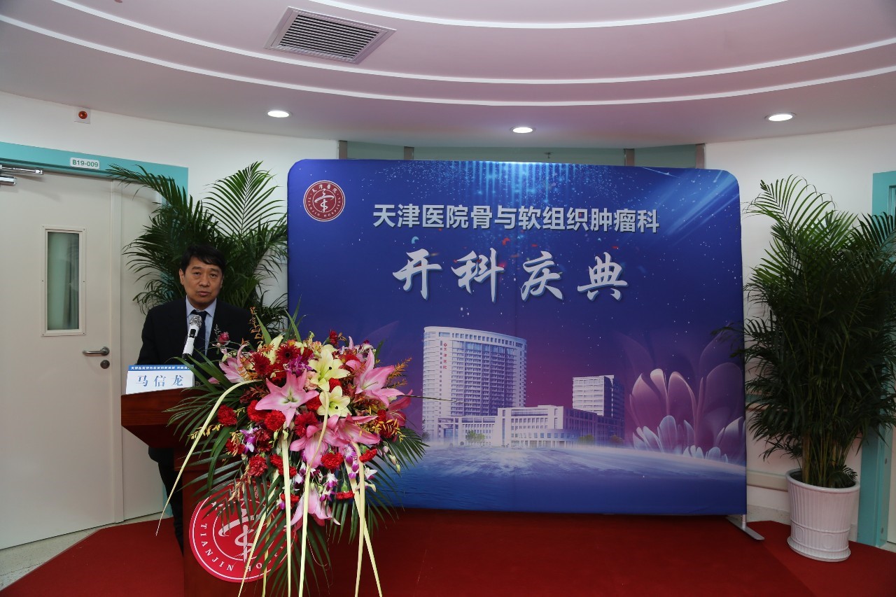 张英泽院士在致辞中代表中国医师协会骨科分会、中华医学会骨科学分会为天津医院在马信龙院长的指导、主持下成立了骨与软组织肿瘤科表示最热烈的祝贺,天津医院曾经作为中国骨科医师的“黄埔军校”为中国的骨科事业做出了积极的贡献,培养了大量的骨科医生,为老百姓做出了巨大的贡献。近年来在马信龙院长的带领下,天津医院发生了翻天覆地的变化,实现了跨越式的发展,希望天津医院骨与软组织肿瘤科高起点、高标准、高质量的把科室建设好、发展好,团结一致,为中国的骨肿瘤专业做出更大的贡献,走在国内和世界的前列。