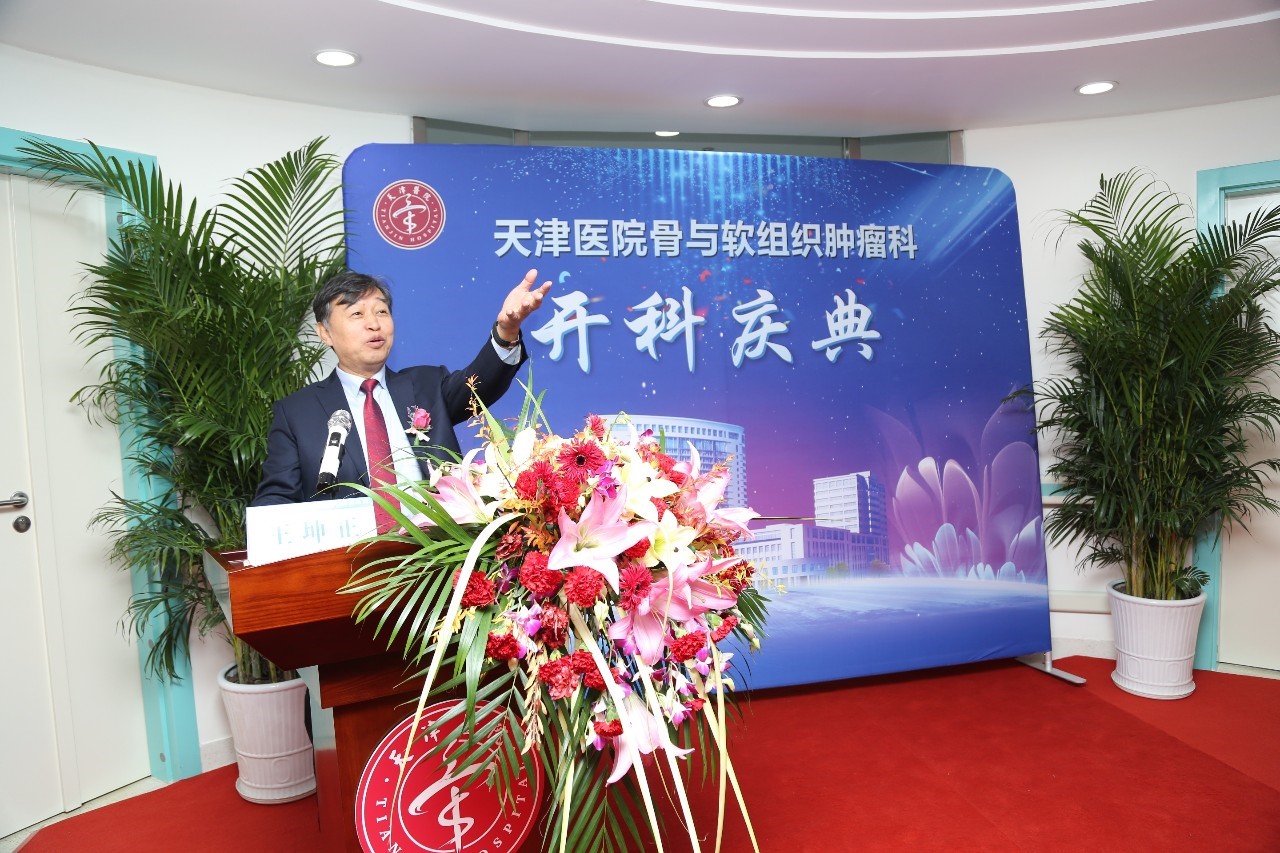 开科仪式由天津医院副院长徐卫国主持,天津医院党委书记、院长马信龙教授在开幕式致辞中代表医院党委、医院领导班子对张英泽院士、田伟院士、王坤正主委以及各位专家在百忙中参加天津医院骨与软组织肿瘤科的开科仪式表示衷心的感谢,这是对天津医院的支持,更是激励。天津医院在其发展历史中,当年由著名骨科专家方先之教授把骨科进行了创伤、骨疾病、小儿骨科、手外科、骨肿瘤的专业分科,建立了现代骨科系统。目前的天津医院在创伤骨科进行专业细化分科的同时,在其他专业方面也瞄准学科技术发展和老百姓的就医需求,发挥天津医院的学科专业优势,进一步完善了骨与软组织肿瘤的治疗方法和理念,更好地服务健康中国的总体要求,希望骨与软组织肿瘤科在胡永成主任的带领下,加强与国际、国内同行的交流、学习与合作,做大做强学科。