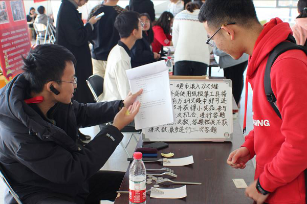 在闯关环节中,不乏许多轻松愉快的趣味游戏。在“屹立东方”环节的硬币叉子游戏中,同学们需要用手立起硬币,并使其在滚动一段距离后稳稳地滑进叉子的缝隙里。“扬帆起航”环节的极速60秒小游戏。参与者需要在规定的时间内,从20张图片中指认出任意10张所对应的数字,每一张图片都可能代表了1到20中的一个,而图片所代表的历史时间或含义则会帮助同学们确定究竟是哪一个数字。在该环节中,同学们八仙过海,各显神通,与出题者斗智斗勇,得益于扎实的理论功底,同学们大都能在规定时间里完成任务。