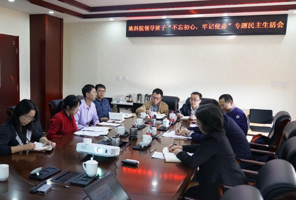 本站讯 根据“不忘初心、牢记使命”主题教育部署要求,11月26日下午,地科院领导班子在16楼601会议室召开主题教育专题民主生活会,按照“四个对照”“四个找一找”的要求,深入检视剖析,严肃开展批评和自我批评,切实增强院领导班子自我净化、自我完善、自我革新、自我提高的能力,奋力推动高质量发展。会议由地科院党委书记徐延平主持,院领导班子成员及党委委员参加。天津大学党委常委、组织部部长贾启君、天津大学“不忘初心、牢记使命”主题教育第四指导组组长常辽华一行到会指导。