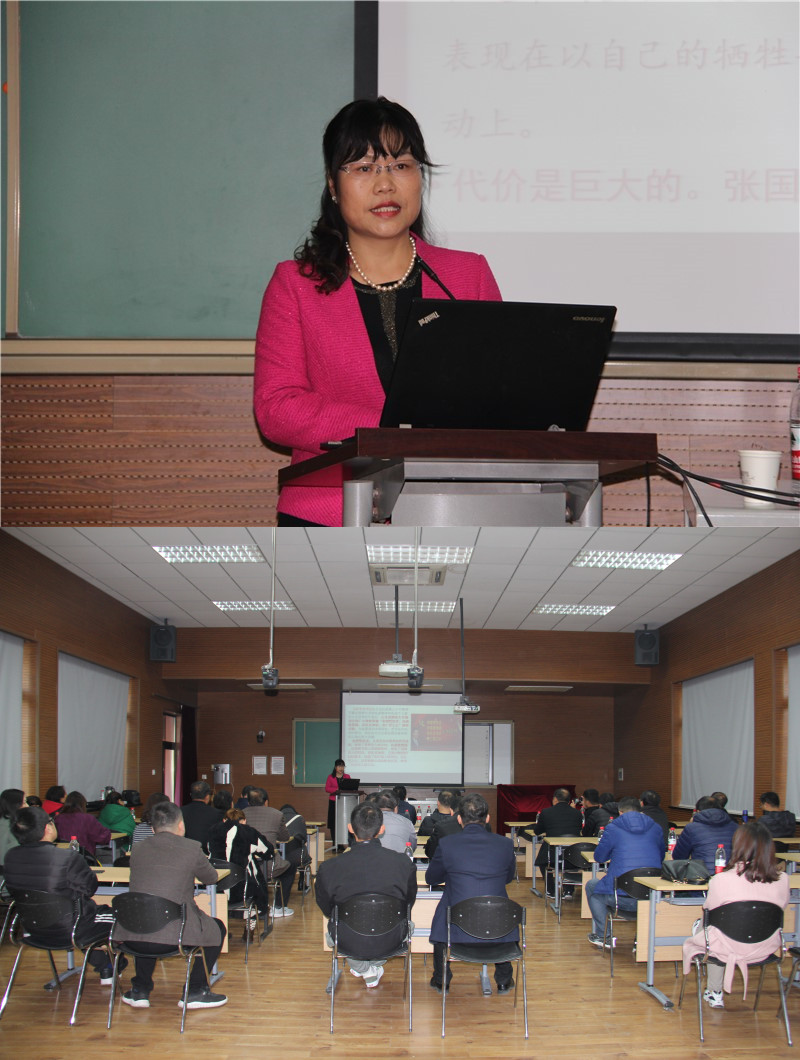 11月14日,由副局长吴玉杰带队的第一期培训班近90位学员于下午1:50便早早来到附小电化教室,天大小幼医党委书记兼工作部部长赵翠云为学员们做了题为《在奋发有为中努力做党的好干部》的主题报告。她从“深刻理解好干部的时代标准、自觉遵循好干部的成长规律、在奋发有为中努力做党的好干部”三个方面详细阐述和回答了什么是好干部、怎样成为好干部及如何做个幸福快乐的好干部。她以天津大学小幼医党委及工作部十年工作实践为依托,结合小幼医在党的建设、队伍建设、文化建设、制度建设、协同发展、国内外交流以及超常规服务师生和双一流大学建设中的理念、做法、案例、感悟和体会等大量实证资料与学员们进行了悉心畅谈和坦诚交流,并结合自己曾任公务员和天大机关干部的成长经历与大家分享了越是奋斗越是幸运的切身感受。鼓励学员们以百折不挠,乐观向上、舍我其谁的斗志和干劲为教体事业做奉献,努力做党的好干部。两个小时的讲座学员们听得津津有味,赢得了阵阵掌声和高度评价。之后,附小校长赵燕结合《新教育理念下的学校教育》、副校长郄辉结合《天大附小求是课程体系建设》等做了发言和交流,一下午的课程使学员们感觉收获满满,不虚此行。吴玉杰副局长代表全体学员表达了对天大老师及干部的敬仰与敬意和感动与感谢之情,鼓励中牟教体局干部见贤思齐、学思践悟。