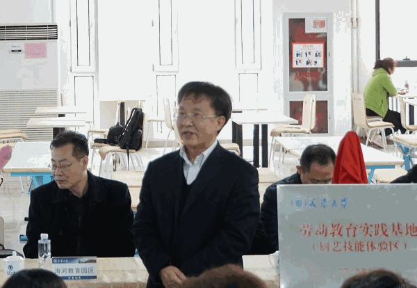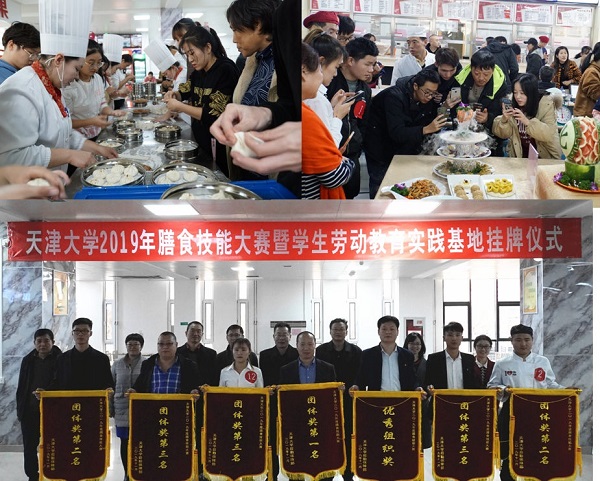 本站讯(通讯员鹿露)11月15日下午,天津大学2019年度膳食技能大赛暨学生劳动教育实践基地挂牌仪式在北洋园校区留园一层餐厅举行。海河教育园区两新副书记、园区工会副主席程德才,天津大学副校长张凤宝,学工部、校工会、校团委、后保部等相关部门负责人以及学院师生代表出席本次活动。另外还特别邀请了全国政协委员、千喜鹤集团董事长刘延云参加。