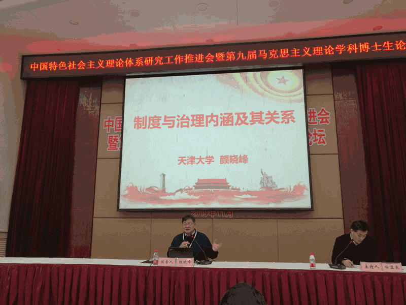 与会专家学者围绕学习研究习近平新时代中国特色社会主义思想、总结交流中国特色社会主义理论体系研究专项课题的工作和研究经验等问题展开研讨。在主题报告环节,颜晓峰向与会学者作了《制度与治理内涵及其关系》的学术报告。在基地交流研讨环节,他对天大基地的工作作了总结。马克思主义学院教师李孟国对教育部《习近平新时代中国特色社会主义思想形成的时代背景研究》课题中天大所承担选题的研究进展作了汇报。会议期间,颜晓峰院长一行实地参观学访了西南大学马克思主义学院。