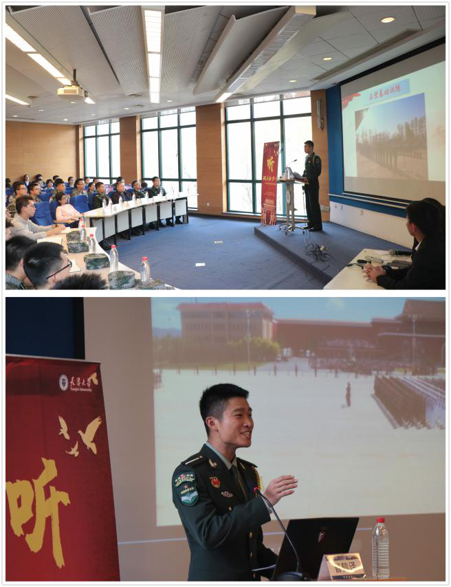 方队2排22号的2013级国防生校友曹鹤译回到母校,在卫津路校区会议楼第八会议室为师生们分享了他亲身参与国庆阅兵的故事。中国人民解放军驻天津大学后备军官选拔培训工作办公室主任汪命锁上校、干事吴雷、干事曲彪、天津大学武装部朱丙锋、主讲人曹鹤译校友的辅导员任丽洁老师以及智算学部学生18新利体育备用