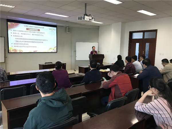 本站讯(通讯员 杨磊)11月7日下午,精仪学院光电信息工程系党支部、光电子科学技术系党支部联合召开组织生活,邀请到党的十九大代表、全国优秀党务工作者、药物科学与技术学院党委书记冯翠玲向与会党员传达党的十九届四中全会精神。