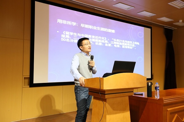 本站讯(通讯员 张建鹏 孙明辉 摄影 崔君孝)为了引导研究生将自身的前途命运同国家和民族的前途命运紧紧联系起来,牢固树立科学报国的坚定信念,11月6日下午2点,机械工程学院“不忘初心、牢记使命”专题教育第三场专题讲座“负笈游学中国梦,科学报国赤子情”在37教学楼1层宏远报告厅顺利举行。讲座由马克思主义学院专业教师黄晓伟主讲,机械工程学院党委学生工作办公室副主任孙明辉、部分辅导员代表,学院研究生党员、积极分子、入党申请人等近200余人聆听了本次讲座。