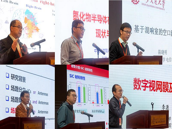 致辞结束后,六位特邀专家进行了学术分享,依次是中国科学院吴南健研究员的“人工智能视觉系统芯片研究进展”,中国科学院半导体研究所张韵研究员的“氮化物半导体在5G通信中的应用现状及展望”,西安交通大学陈晓明教授的“混响室空口测试技术”,东南大学胡三明教授的“场路融合的太赫兹芯片”,西安电子科技大学的张艺蒙副教授的 “高阈值电压稳定性的4H-SiC VDMOSFET器件的设计与实现”以及北京大学李源博士的“数字视网膜及智能芯片设计”。