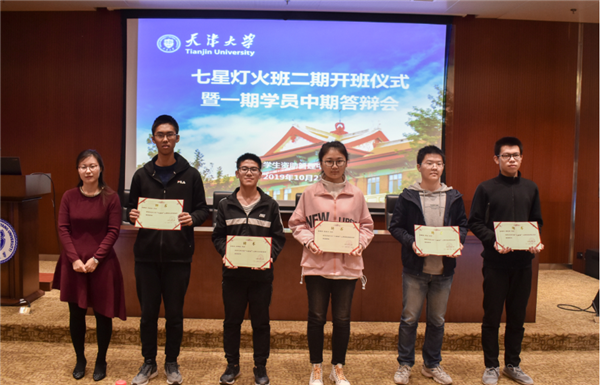 本站讯(学生资助管理中心供稿)10月27日下午,天津大学家庭经济困难新生综合素质培训班“七星灯火班”二期开班仪式暨一期学员中期答辩会在北洋园校区行政服务中心报告厅A102举行。学生资助管理中心和部分学院教师代表出席开班仪式,并担任答辩会评委。