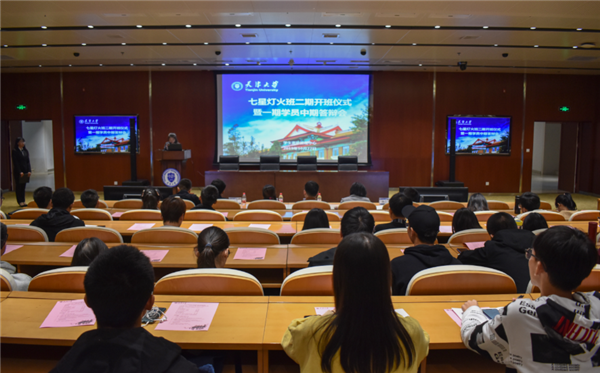活动伊始,主持人介绍了七星灯火班的基本情况和培养方案。七星灯火班的班名取自天津大学发展历程上“七星灯火”的故事,而七星灯火班意为激励家庭经济困难新生即使身处逆境,也应刻苦学习,自强自立,打破桎梏,展翅翱翔,为中华民族伟大复兴中国梦贡献力量。七星灯火班旨在通过两年的培训学习、实践锻炼、成长指导、经历体验等让家庭经济特别困难的新生适应大学、融入城市、快乐发展,使其成长为品德优良、知识丰富、本领过硬、自立自强的社会主义建设者和接班人,助力学生家庭稳固脱贫、高质量脱贫,帮助学生拓展兴趣,提升各方面能力。