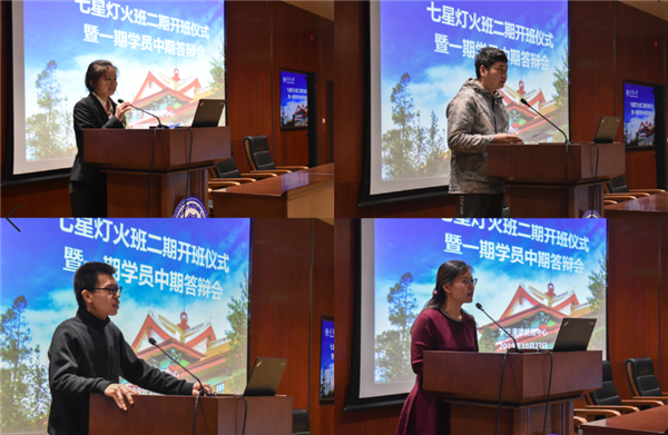 开班仪式结束后,二期学员和学生朋辈导师开展见面会,互相熟悉。一期学员依次上台,结合多媒体展示,汇报自己在七星灯火班一年中的成长与收获。教师代表也针对每名学员的演讲内容、展示风格和多媒体演示文件制作中的优缺点进行了点评,提出了很多行之有效的建议。学员们纷纷表示再这次答辩中收获到了很多实用的演讲经验和技巧,对提高个人展示水平有很大帮助。