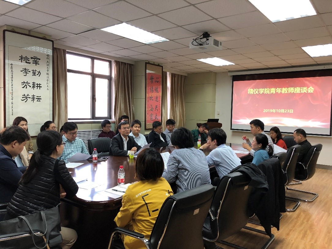 本站讯(通讯员 张茹芳)10月23日下午,精仪学院结合“不忘初心、牢记使命” 主题教育专项调研工作召开青年教师座谈会,旨在通过面对面交流进一步了解青年教师思想和工作情况、听取意见建议,以更好地促进青年教师成长和学院事业发展。学院领导班子成员、各系主任以及30余位青年教师参加了座谈。