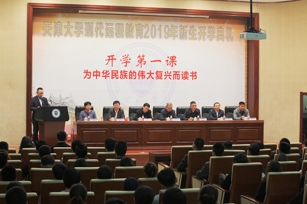 10月20日上午,在庄严雄壮的国歌声中,天津大学现代远程教育2019年新生开学典礼暨新生“开学第一课”在卫津路校区科学图书馆二层报告厅隆重举行。天津大学党委常委、校长助理张力新,天津大学“不忘初心、牢记使命”主题教育第五指导组组长程文生,现代远程教育杰出校友、党的十九大代表、全国优秀共产党员、全国“五一劳动奖章”获得者、天津市总工会副主席徐文华,天津滨海新区大港街主任李宏杰,天津大学远程与继续教育党总支书记、网络教育学院院长李振宇,远程与继续教育院长殷红春,远程与继续教育党总支副书记、副院长王春艳出席了开学典礼。天津地区2019年秋季新生、校外学习中心代表以及政府、行业、企业的领导和嘉宾代表共200余人参加了典礼。典礼由远程与继续教育学院院长助理卢楠主持。