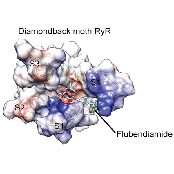 近年来,随着农药的长期过量频繁使用,昆虫的抗药性问题也益加严重,给每年的粮食生产带来了巨大的经济损失。因此农药的作用机理及昆虫的抗药性机制研究显得极为迫切。尉迟之光教授团队长期致力于昆虫杀虫剂靶标蛋白的研究。此次研究团队通过计算机建模和分子对接的方法研究了重要农业害虫小菜蛾的杀虫剂靶标鱼尼丁受体,揭示了通道在生理条件下的开关调节机理,与双酰胺杀虫剂的识别结合机制,以及小菜蛾产生抗药性的分子机理。此项成果为新型绿色农药的研发提供了重要的理论依据,具有十分深远的意义。
