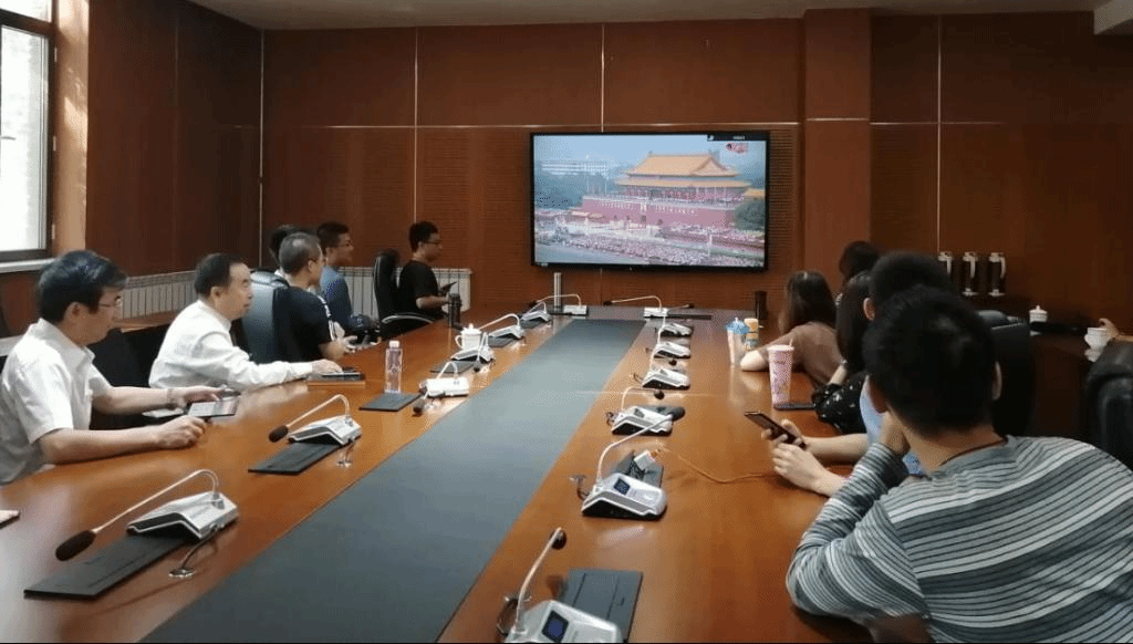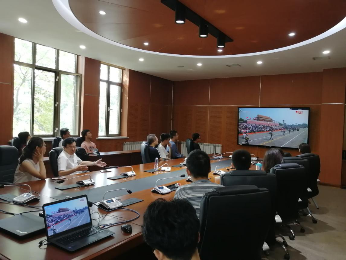 本站讯 10月1日上午,为庆祝中华人民共和国成立70周年,中共中央、国务院在北京隆重举行庆祝大会、阅兵和群众游行。法学院师生通过多种形式观看了直播,认真学习习近平总书记重要讲话。院长孙佑海教授、党委书记杨欢组织师生代表近40人在学院会议室进行了集中收看。