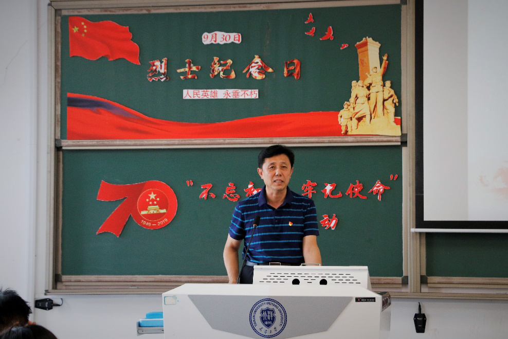 本站讯 为深入学习贯彻习近平新时代中国特色社会主义思想,喜迎中华人民共和国成立70周年,不断增强基层组织的创造力、凝聚力和战斗力,9月29日下午,天津大学财务处党支部、招标办党支部、建工学院2019级博士一班党支部、建工学院教师代表联合开展“不忘初心、牢记使命”主题教育。此次活动主题为“我和我的祖国”——缅怀先烈,庆祝新中国成立70周年。天津大学党委常委、总会计师古瑶,以及100余名党员及群众参加了活动。