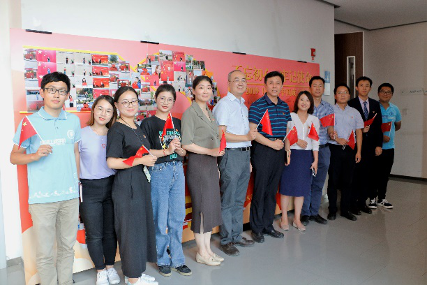 紧接着,大家前往“庆祝新中国成立70周年——我和国旗同框”主题照片墙。大家把自己与国旗的合照粘贴成“70”的样式,并纷纷留下对祖国的祝福。歌颂新时代,唱响主旋律,弘扬正能量,一份份饱含深情的祝福,表达了我们对祖国的无限热爱。