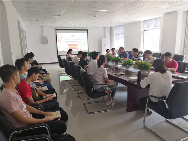 首先,尹明带领支部成员共同学习了习近平总书记在“不忘初心、牢记使命”主题教育工作会议上的讲话以及《习近平关于“不忘初心、牢记使命”论述摘编》部分内容,并对支部接下来的主题教育活动安排进行介绍,强调在主题教育活动中应贯彻“守初心、担使命,找差距、抓落实”的总要求,要将学习教育、调查研究、检视问题、整改落实四项措施贯穿始终。