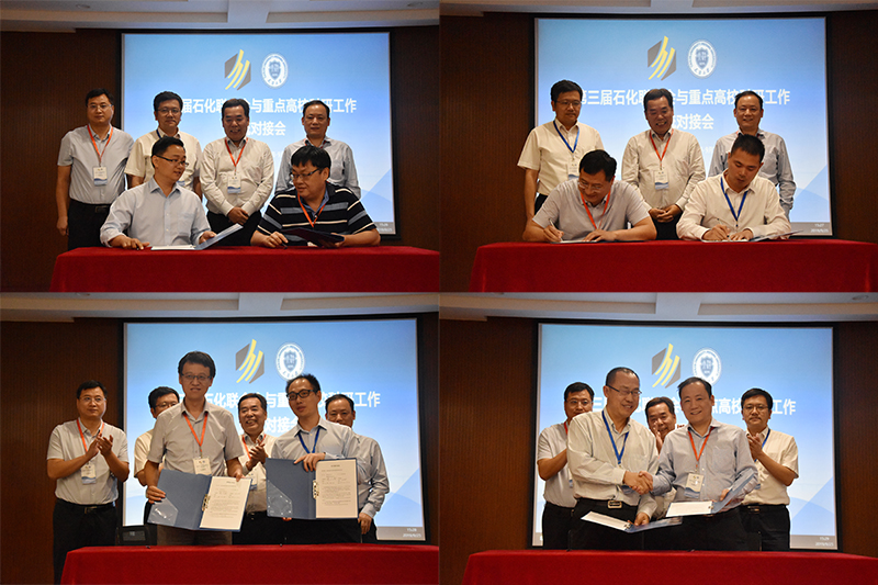 在中国石油和化学工业联合会副会长周竹叶、清华大学化工系副主任王玉军、南京工业大化工学院院长范益群和华南理工大学化工学院院长张正国的见证下,天津大学与天津渤海化工集团有限公司就“二氧化碳的布集与利用新技术”、清华大学与江苏扬农化工集团有限公司就“安全生产管理的管控平台”、浙江大学与浙江新安化工集团股份有限公司就“定向转化烟气深度治理技术及应用”、华南理工大学与青岛爱尔家佳新材料有限公司就“水性涂料的树脂”等4个项目签署了合作意向书。