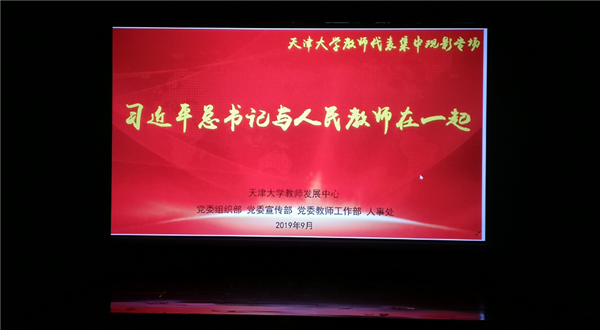 本站讯(通讯员 韩晓萌)教育是国之大计、党之大计,教师是立教之本、兴教之源。为庆祝新中国七十华诞,弘扬新时代尊师风尚,充分发挥教育系统先进师德典型的教育示范作用,营造尊师重教的良好氛围,9月19日下午,天津大学组织近300名教师代表在大通学生活动中心观看专题片《习近平总书记与人民教师在一起》、电影《一生只为一事来》和《天津大学师德公约》宣传片。