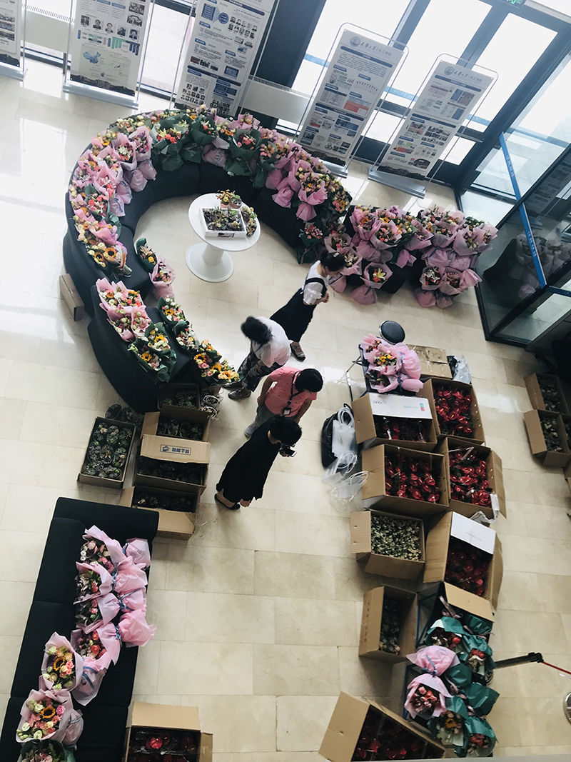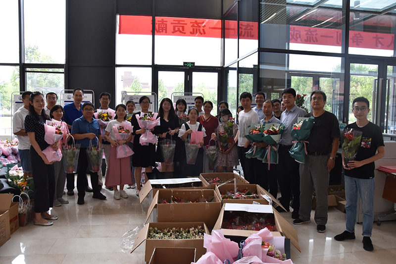 9月10日上午11点在化工学院大厅举行了教师节为老师献花的活动。学生抱着感恩的心积极参与,老师手捧鲜花露出欣慰的笑容。