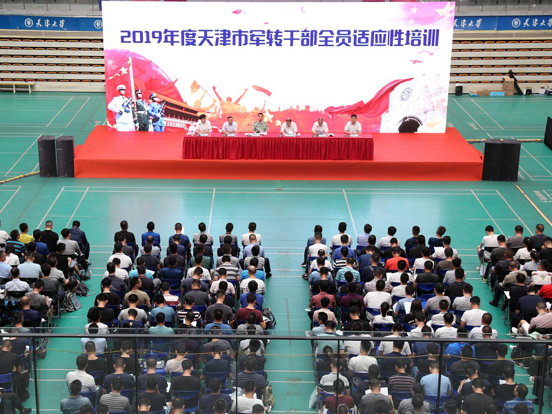 8月28日,2019年度天津市军转干部全员适应性培训及公务员录用资格考试考前培训在卫津路校区体育馆顺利举行,为军转干部转业到地方上好第一堂课。