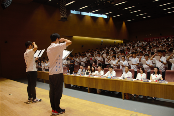首届“未来智能机器与系统”科技创新计划实验班姚易男和国际工程师学院计算机技术专业朱琨分别代表本科和研究生新生发言,他们表示对未来的学习生活充满期待,将以饱满的热情,昂扬的精神面貌积极面对各种挑战,充分发扬实事求是的治学精神,圆满完成学业。随后带领全体新生宣读并签署《荣誉誓词》。