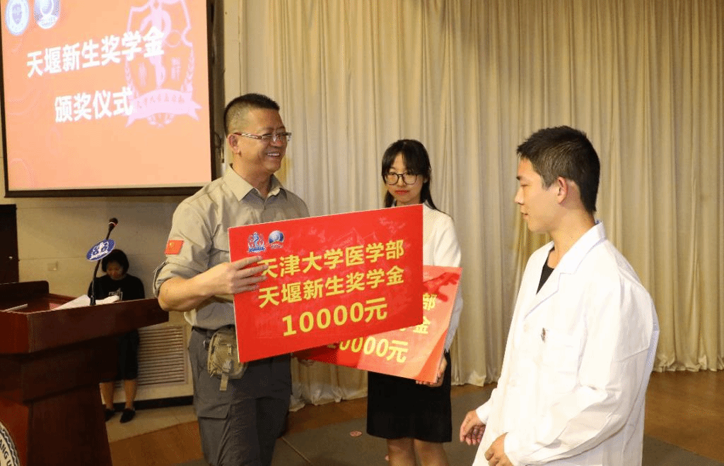 “天津大学天堰医学发展基金”的设立者之一,刘霄飞为五名获奖同学颁发了新生奖学金。随后,他结合自身的学习经历谈到,人生如同长跑,当驰骋在奋进的赛道中,途中会有诸多的惊喜等待着大家,同学们要做的就是走好人生的每一步,将自己塑造成优秀的人。