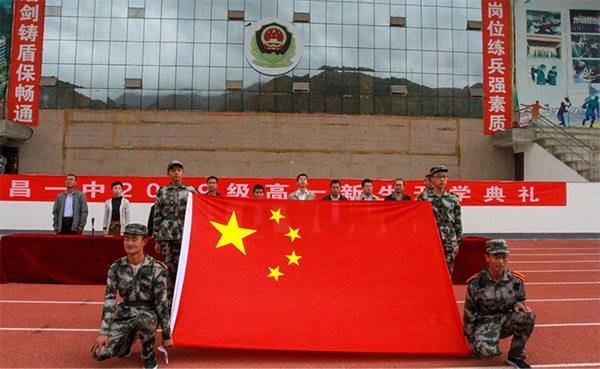 本站讯(通讯员 辛科霆)9月2日清晨,当第一道曙光照亮天空时,甘肃宕昌第一中学的1200名高一新生,在洪亮整齐的国歌声中,迎来了独具意义的“开学第一课”——与千里之外的天津大学同时升起国旗,同步开展“我与祖国共奋进”主题教育活动。在庆祝新中国成立70周年之际,为纪念中国人民抗日战争胜利74周年,天津大学研究生支教团在宕昌一中开展升旗仪式,引导新生回眸历史、瞩望未来,在坚定的目光与嘹亮的歌声中,根植爱国主义情怀。