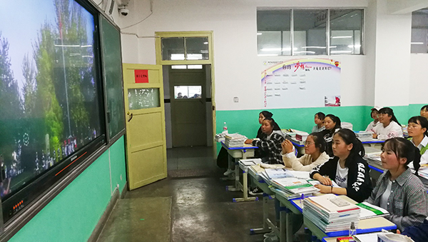 在这堂别开生面的“开学第一课”中,宕昌一中的同学们还通过“智慧云课堂”,远程观看了千里之外的天津大学“我与祖国共奋进”团日活动纪实。教室里,学生们聚精会神,观看着天津大学国旗护卫队的升旗视频。国护队整齐铿锵的步伐,干净利落的展旗动作,整装肃容的飒爽英姿,给一中的同学们留下了深刻的印象。