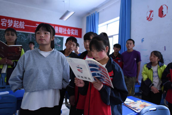 14日,一行人来到宕昌县车拉九年制学校,为参加天津大学暑期社会实践“教育扶贫,控辍保学”主题夏令营的孩子们带来了一场生动的音乐课。艺术教育中心冯公让老师引用音乐家舒伯特的名言“我可以贫穷,但音乐不允许我平庸”,鼓励孩子们树立远大理想,求真理、学知识、长才干,成才后回到家乡建设美丽宕昌。课程的最后,所有教师与孩子们共唱《我和我的祖国》。